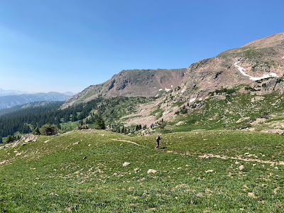 Sunday (31,528 steps) - While neither of us was especially excited at the prospect of another early morning, we definitely wanted to get started early enough that we would have time to come back to the campground and pack up before noon. Our adventure of the day was running the Run the Rockies course again! I have run these trails every year for 6-7 years now and I just love them. They aren't too technical, none of the climbs are too outrageous - and it's super pretty with plenty of trees, wildflowers, and a view of the lake. My legs were certainly grateful that we had opted to NOT do a run with a lot of vertical. All the miles from the week were starting to catch up with me! The trails did not disappoint, and there was hardly anyone out at this hour.